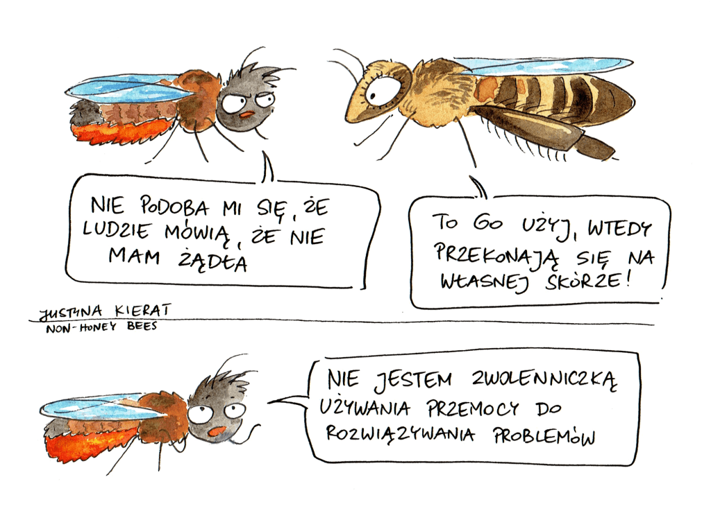 A co z pozostałymi ponad 20 000 innych gatunków pszczół świata, czy choćby tylko niecałymi 500 zamieszkującymi Polskę? W opinii publicznej często pojawiają się dwie, wykluczające się, opinie: jedna, że dzikie pszczoły żądlą tak samo jak pszczoła miodna, a druga, że w przeciwieństwie do niej żądeł w ogóle nie posiadają. A jaka jest prawda? Cóż… podwójnie odwrotna.