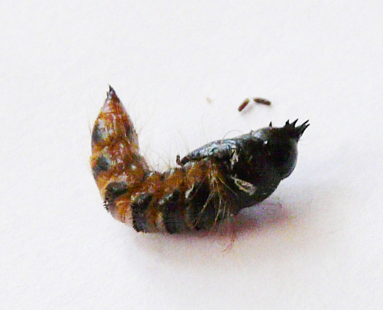 Powyżej możecie zobaczyć dorosłego osobnika sfotografowanego dzisiaj, a pod nim archiwalne zdjęcie poczwarki – zwracają uwagę kolce na jej przedniej części.