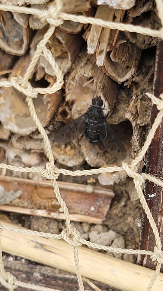 Larwy tej muchówki rozwijają się w gniazdach pszczół. Nie zjada ona pyłku, ale samą rozwijającą się pszczołę- i to dopiero po tym, jak ta zbuduje kokon. Larwa Anthrax ustawia się tak, żeby znaleźć się wewnątrz razem z pszczołą. Kiedy na studiach otwierałam kokony murarek, delikatnie nacinając czubek, żeby sprawdzić płeć siedzącej w środku pszczoły, zdarzało się, że zamiast czarnej lub blond czupryny moim oczom ukazywała się biała, grubiutka larwa. Trudno było jej przy tym nie uszkodzić, bo w przeciwieństwie do murarki – wypełniała cały kokon. Parę razy siei jednak udało i miałam okazję hodować tę muchówkę aż do dorosłego osobnika. Poczwarka ma na przednim końcu kolce i jest całkiem, jak na poczwarkę, ruchliwa. Przebija się przez ściankę kokonu i ściankę gniazda, tak że dorosły owad może bez problemu wyjść na zewnątrz.