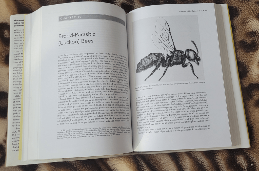 Ta pozycja została wydana w 2019, więc ma już dobrych kilka lat. Myślę jednak, że zbyt szybko się nie zestarzeje. W mojej ocenie jest typowym podręcznikiem – zbiera i podsumowuje stan wiedzy na temat pszczół samotnych (oraz pasożytniczych). W przeciwieństwie do książki „Solitary bees” Bentona i Owensa, nie ma tam w zasadzie nic o gatunkach społecznych. To książka, którą po przeczytaniu postawiłam na półce w łatwodostępnym miejscu i do której cały czas zdarza mi się sięgać.