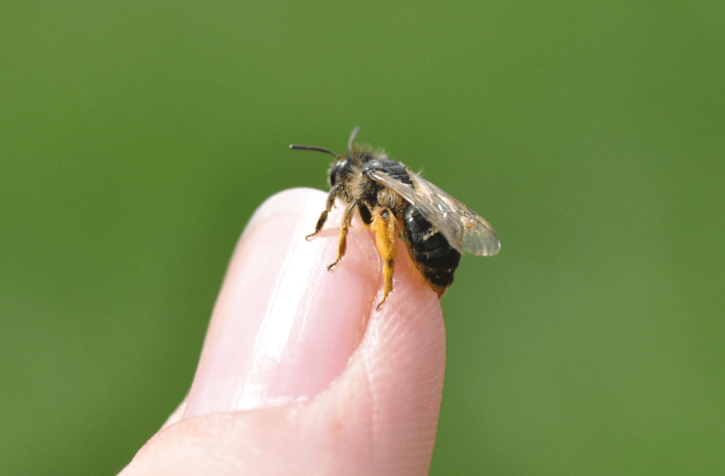Pogoda była w kratkę. Słońce na przemian pojawiało się i kryło za chmurami, co powodowało drastyczną zmianę w warunkach obserwacji. W słońcu było bardzo ciepło i warunki na pszczoły były idealne. Kiedy się chowało – robiło się naprawdę chłodno, a pszczoły przechodziły w tryb „stand-by”. Miało to jednakże swoje zalety – z powodu tak szybkiej zmienności pogody samiczki nie chowały się do swoich norek, ale przysiadały tam, gdzie akurat się znajdowały – na kwiatku czy liściu – i czasem udawało się je wypatrzyć. A takie zmarznięte pszczoły są powolne, niechętne do ucieczki, więc można je spokojnie obfotografować, a przy odrobinie szczęścia nawet zachęcić do wejścia na palec.