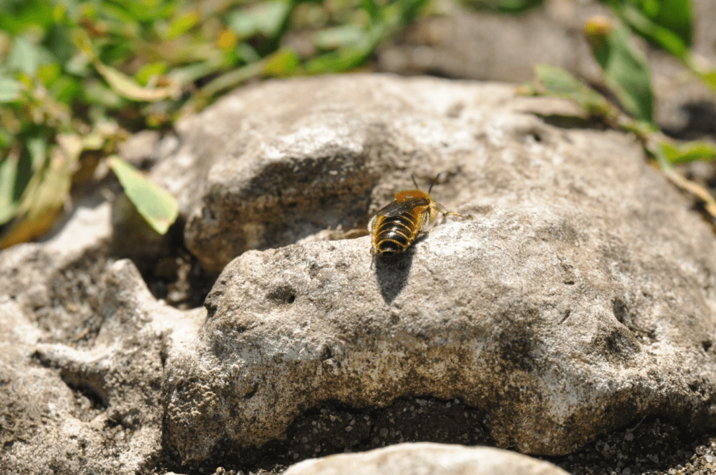 Oprócz tych drobnych różnic w wyglądzie, jest też pewna duża różnica w trybie życia. Pseudomurarka żmijowcowa gniazduje w różnych znalezionych szczelinach (jeśli będziecie mieć domek dla owadów, żmijowiec i szczęście, to może zagniazdować u Was). Nakamionka z kolei buduje wolne gniazda, lepione z „zaprawy murarskiej” i przylepiane do kamieni. Sposobem gniazdowania przypomina więc wymarłą w naszym kraju obrostkę murówkę (Megachile parietina). Gniazd zobaczyć mi się nie udało, ale muszą gdzieś tam być. Może kiedyś szczęście mi dopisze.