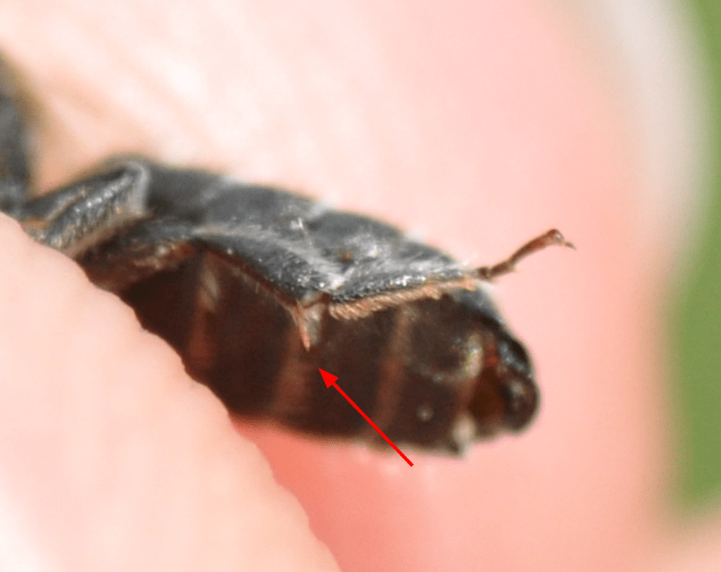 Ta pseudomurarka jest bardzo podobna zarówno z wyglądu, jak i trybu życia do o wiele częstszej pseudomurarki żmijowcowej (Hoplitis adunca). Do głównych różnic należy kolor kolca przy tylnych nogach (wskazany strzałką na zdjęciu poniżej) oraz grubość głowy. Jeśli dodać do tego szybkość, z jaką poruszają się oba gatunki, nie powinno dziwić, że jestem zasadniczo pewna identyfikacji tylko tych osobników, które miałam w ręku.